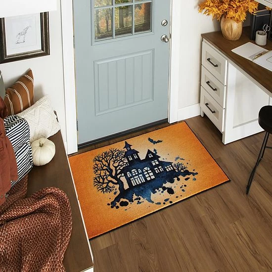Lend spooky seasonal style to your home’s Halloween decor with this Mohawk Home Haunted Silhouette rug.