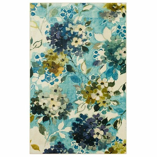 Make your home your own with this magnificent with this Mohawk® Home Hydrangea Blooms Aqua Area Rug.