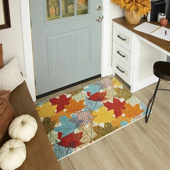 Experience the excellence of recycled EverStrand construction in this stylish and seasonal Mohawk Home Multi-Color Leaves rug.
