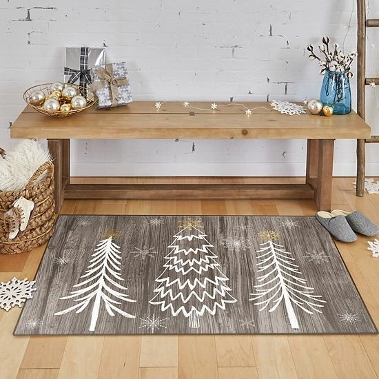 - Features artisan-inspired outlines of pine trees and snowflakes in white and gold add eye-catching detail