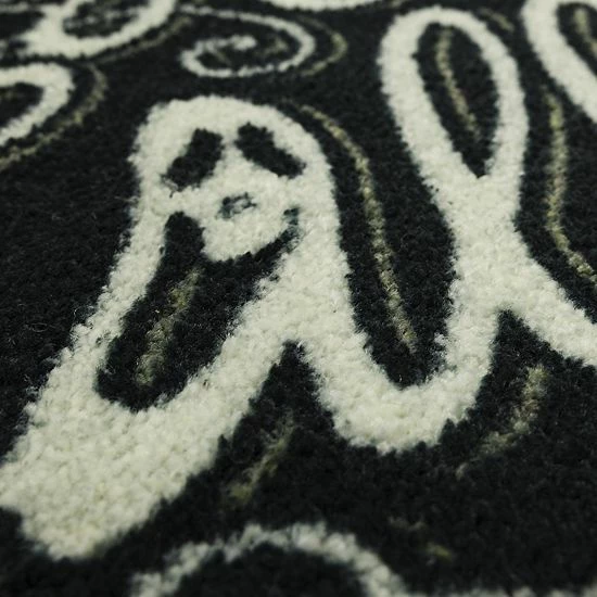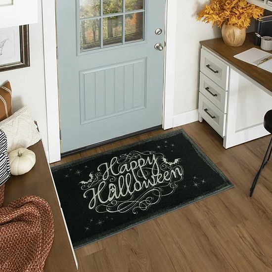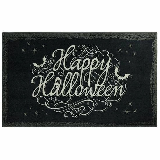 Lend spooky seasonal style to your home’s Halloween decor with this Mohawk Home Prismatic Bat Script rug.
