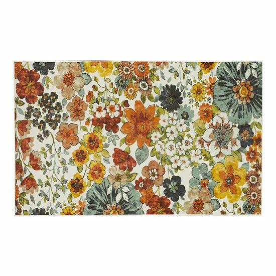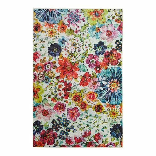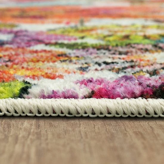 This Mohawk Home Prismatic Blossoms Rainbow Recycled EverStrand Area Rug is as beautiful as it is durable, suitable for any living area.