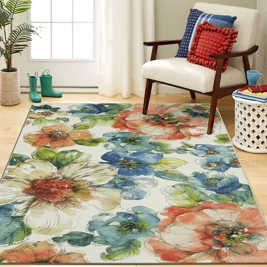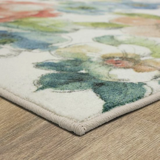 Lend some artistic flair to any floor with this durable Mohawk Home Prismatic EverStrand Summer Bloom Garden rug.