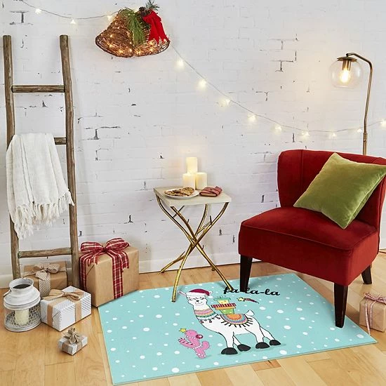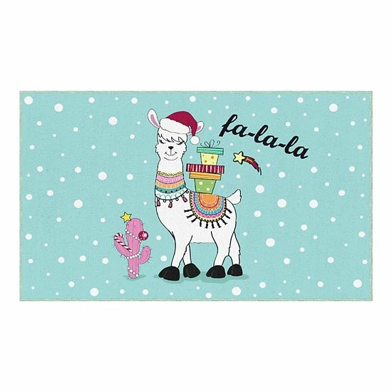 Sing along to your favorite Christmas carols with the youthful imagery and multi-colored shades from this rectangular polyester rug. Brightly designed, a cactus tree and cheerful llama encourage a joyous mood. Dress up your living room with playful, modern style.