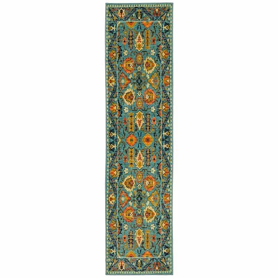 - Traditional Oriental design elements burst to life in an over dyed palette of aqua blue, indigo, fiery red, gold, neutral beige, green and chocolate brown in the modern transitional style of Mohawk Homes Gwyneth area rug