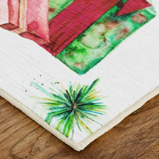 Comfortable for every member of the family, this polyester holiday rug celebrates furry friends. The multi-colored imagery features a Santa yorkie nestled in a pile of presents. Modern and playful, the rectangular rug was constructed with precision dye injected cut pile details.