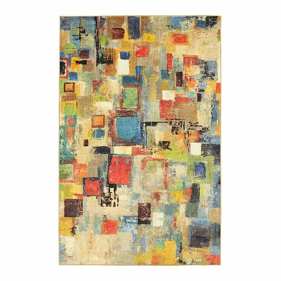 - Abstract art for your floor, the painterly inspired design of Mohawk Homes Saratoga Area Rug in Multicolor features an overdyed color palette bursting with pops of versatile primary colors like rich red, indigo blue, golden yellow, fresh green, charcoal black, pure white and neutral beige